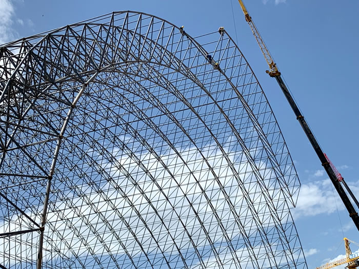 (2)网架加工前应对现场尺寸进行复测,确认无误后方可进行加工、安装;网架制作、运输、安装应遵守《空间网格结构技术规程》JGJ7-2010、《钢网架拉萨螺栓球节点》JG/T 10-2009、《钢网架拉萨螺栓球节点用高强度螺栓》 GB/T 16939-2016、《拉萨钢结构拉萨工程拉萨施工规范》 GB50755-2012、《拉萨钢结构拉萨工程拉萨施工质量验收标准》 GB50205-2020。